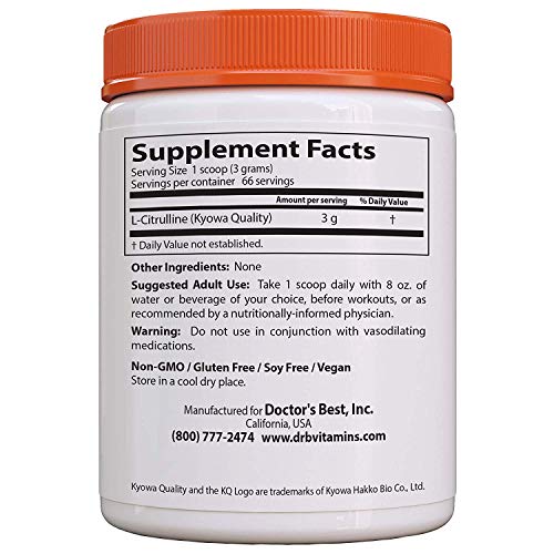 Além disso, o Doctor’s Best L-Citrulline Powder é um produto de alta qualidade, livre de organismos geneticamente modificados (OGM), glúten, soja e ingredientes de origem animal. É adequado para veganos e pessoas com restrições alimentares específicas.