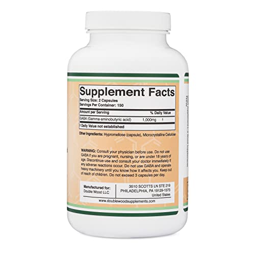 GABA Supplement (300 Capsules, 1,000mg per Serving) Promotes Calm, Relaxation, and Supports Sleep (Vegan Safe, Gluten Free, Non-GMO)(Gamma Aminobutyric Acid) by Double Wood