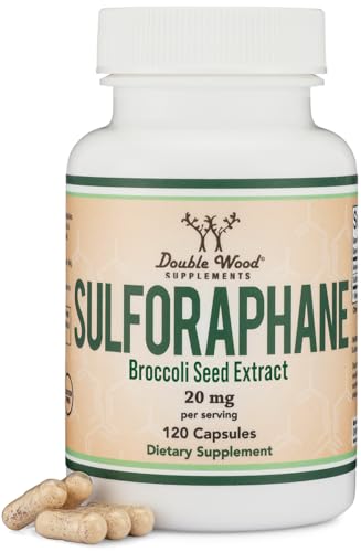 Suplemento de Sulforafano – 20mg de Sulforafano por Porção (120 Cápsulas) Extrato Potente de Brócolis para o Envelhecimento Saudável (Derivado de Broto de Brócolis, Adequado para Veganos) por Double Wood