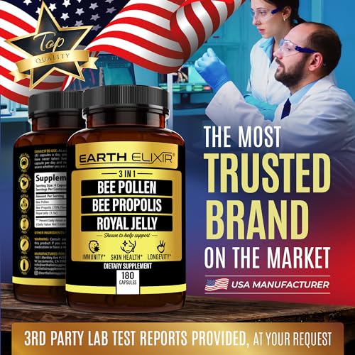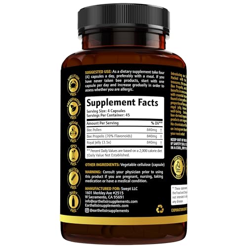 As cápsulas de pólen de abelha, geleia real e própolis da Earth Elixir são fabricadas com ingredientes orgânicos de alta qualidade, garantindo a pureza e a eficácia do produto.