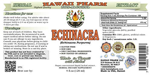 Echinacea Alcohol-Free Liquid Extract, Organic Echinacea (Echinacea Purpurea) Dried Herb Glycerite Hawaii Pharm Natural Herbal Supplement 4 oz