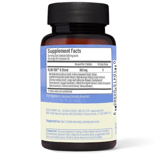 COMBINATION OF 12 AYURVEDIC HERBS: O nosso suplemento herbal Elim-Tox-O é uma combinação de 12 ervas ayurvédicas: Hemidesmus Indicus, Indian Rosewood, Indian Madder, Hemidesmus Indicus, Chinese Smilax, Large-leaf Callicarpa, Sandalwood, Guggul, Lebbek Tree, Indian Tinospora, Licorice e Mesua.