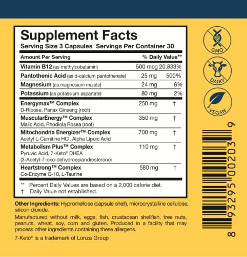 O Energy Multi-Plex contém 4 complexos proprietários e 14 nutrientes pesquisados, incluindo 7-Keto DHEA, CoQ10, ácido málico, taurina, Rhodiola rosea, vitamina B12, ácido pantotênico, ginseng e muito mais. Esses ingredientes foram cuidadosamente selecionados para fornecer uma ampla gama de nutrientes, ervas, minerais e vitaminas para promover a energia.