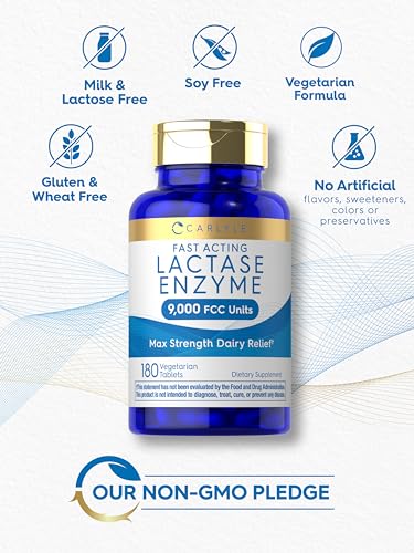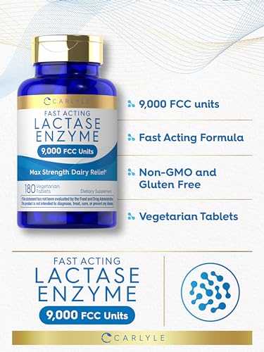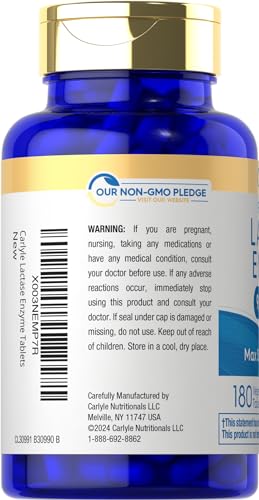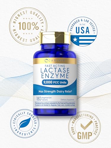 Carlyle Fast Acting Lactase Enzyme Pills | 9000 FCC | 180 Tablets | Dairy Relief Supplement | Max Strength Support | Non-GMO, Gluten Free Supplement