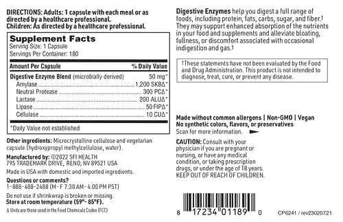 Este produto fornece enzimas microbianas para ajudar na digestão de uma ampla variedade de alimentos, incluindo proteínas, gorduras, carboidratos, açúcar e fibras. Cada enzima em Digestive Enzymes desempenha um papel que pode ajudar o corpo a absorver melhor os nutrientes dos alimentos e suplementos. Além disso, este produto pode ajudar a aliviar a sensação de inchaço, plenitude ou desconforto associados ao gás ocasional. As enzimas digestivas derivadas de microrganismos (amilase, lactase, lipase, celulase e protease neutra) são formuladas para serem mais estáveis em relação ao pH, atuando em uma faixa de pH mais ampla no trato intestinal do que as enzimas derivadas de animais. Este produto é livre dos seguintes alérgenos comuns: leite/caseína, ovos, peixes, frutos do mar, nozes e amendoins. Não contém corantes, sabores ou conservantes artificiais. Fundada em 1969, os produtos da Klaire Labs são desenvolvidos em estreita colaboração com médicos e destinam-se a serem usados conforme orientação de um profissional de saúde.