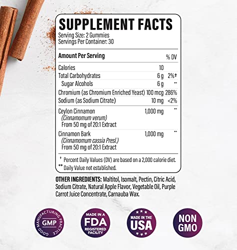 Say Goodbye to Cinnamon Pills: Switch to our delightful Ceylon Cinnamon Sugar-Free Gummies, offering a tasty apple pie flavor with 2000mg of antioxidant support per serving. Enjoy the benefits of cinnamon without the hassle of hard-to-swallow pills.