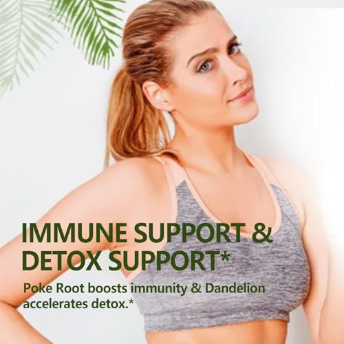 Suporte ao Sistema Imunológico e Detox: Nosso suplemento vegano ajuda a impulsionar a imunidade e os níveis de desintoxicação. A raiz de poke é tradicionalmente usada para equilíbrio imunológico e defesa natural. Combinado com goldenseal e sabugueiro, ele suporta a reparação e regeneração celular, protegendo o sistema linfático. Além disso, nossa fórmula de bem-estar inclui dente-de-leão e cavalinha, diuréticos naturais que reduzem o inchaço e a retenção de líquidos, promovendo uma limpeza linfática detox.*