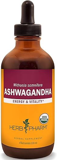 Herb Pharm Certified Organic Ashwagandha Extract for Energy and Vitality, Organic Cane Alcohol, 4 Ounce
