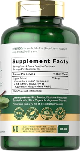 Carlyle Guggul Extract 1500mg | 180 Capsules | Guggulsterone Supplement | Non-GMO and Gluten Free