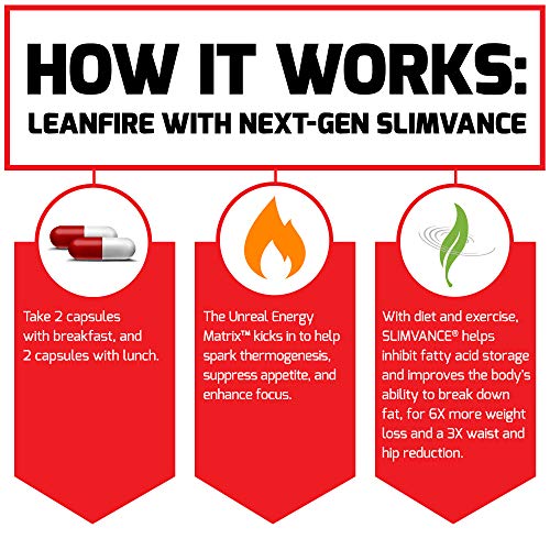 TRUE WEIGHT LOSS BREAKTHROUGH: Por anos, os comprimidos para emagrecimento têm produzido resultados mistos, lançando dúvidas sobre sua eficácia. Após quase 30 anos de fórmulas medíocres, a próxima geração em ciência de perda de peso chegou. O LeanFire com Next-Gen SLIMVANCE foi desenvolvido para fornecer resultados abrangentes de perda de peso em três fases: restringir a produção de gordura, evitar o armazenamento de gordura e acelerar a oxidação de gordura.