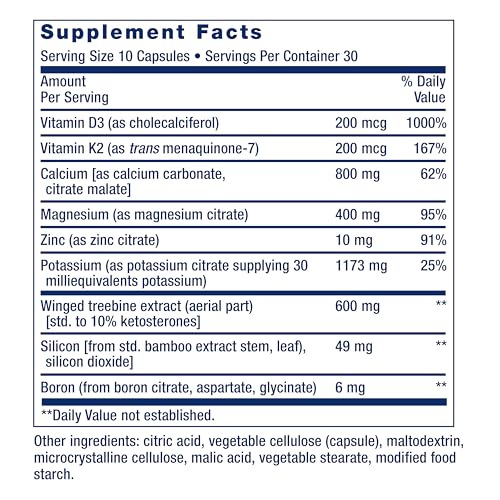 Além disso, este suplemento inclui minerais benéficos para os ossos, como magnésio, zinco, boro e sílica. Esses minerais traços são nutrientes essenciais para a matriz óssea dentro dos ossos, apoiando a mineralização óssea saudável.