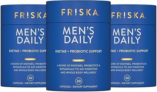 FRISKA Men’s Daily Digestive Enzyme and Probiotics Supplement, Natural Support for Male Digestive Health, Bloating, Gas, Indigestion Relief, Supports Gut Health, Lactase and…