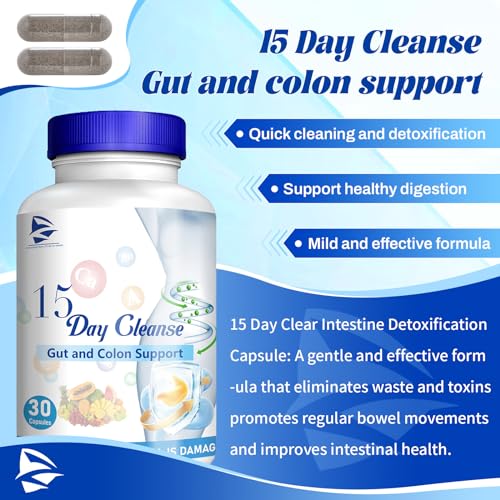 2024 New Formula 15 Day Gut Cleanse – Gut and Colon Support, 15 Day Cleanse Bowel Dissolving Capsules, Advanced Formula with Senna, Cascara Sagrada