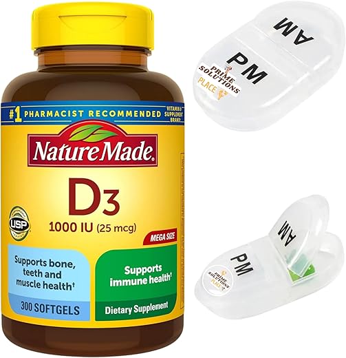 Com uma embalagem que contém 300 cápsulas, o Nature Made Vitamin D3 1000 IU (25 mcg) oferece um suprimento para 300 dias. Com apenas uma compra, você garante quase um ano de suplementação diária, sem se preocupar em repor o estoque constantemente. Além disso, o produto vem acompanhado de um prático estojo de viagem, permitindo que você atenda às suas necessidades de Vitamina D onde quer que esteja.