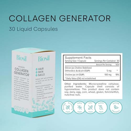 O Biosil Collagen Generator segue os mais altos padrões de qualidade. É adequado para veganos e não contém organismos geneticamente modificados (GMOs), soja, laticínios, ovos, milho, trigo, glúten, peixes/mariscos, amendoim/nozes/frutas secas, ingredientes de origem animal, corantes ou conservantes artificiais, sabores ou adoçantes.