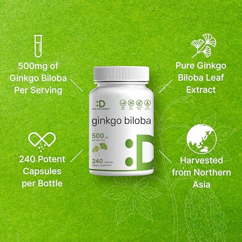 Ginkgo Biloba Extract Capsules – Cápsulas de extrato de folha de ginkgo biloba de alta potência, com 240 unidades, feitas com pó de extrato puro de folha de ginkgo biloba, cultivado no norte da Ásia, que tem sido tradicionalmente utilizado por milhares de anos, fornecendo suprimento para até 4 meses, orgulhosamente fabricado nos EUA.
