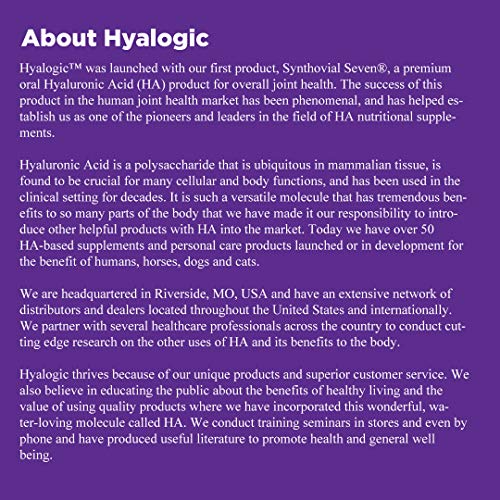 Liderando o caminho com o ácido hialurônico: Há 20 anos, a Hyalogic vem pesquisando e desenvolvendo mais de 50 produtos de cuidados pessoais infundidos com ácido hialurônico (a molécula mais hidrofílica conhecida pelo homem)! A Hyalogic foi a primeira a criar uma linha completa de suplementos e produtos para cuidados com a pele usando ácido hialurônico de alto peso molecular. Nossos produtos ajudam a hidratar as articulações e suportam cabelos, pele, olhos e ossos com ácido hialurônico, proporcionando hidratação natural.