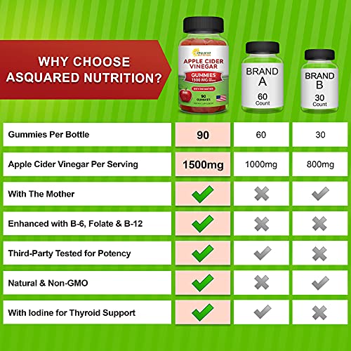 Nossas gomas de vinagre de maçã da aSquared Nutrition são formuladas com uma dose máxima de 1500mg de vinagre de maçã por porção, garantindo que você obtenha todos os benefícios em cada goma.
