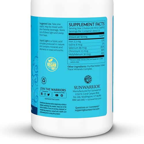 Fulvic Acid Trace Minerals Drops Supplement Organic Liquid Mineral Water Drops Vegan | Plant Based Liquid Light Mineral Complex 32 Fl Oz 32 Servings by Sunwarrior