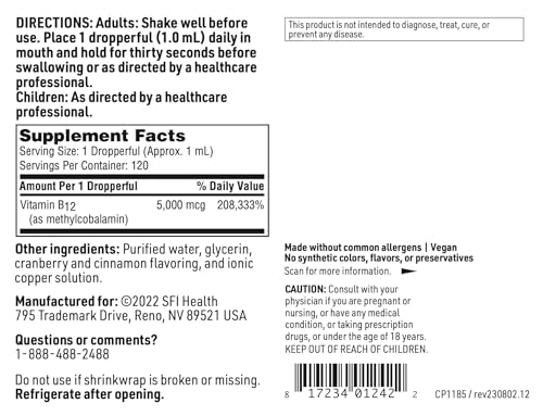 3. Alta concentração: Cada conta-gotas contém 5 mg (5000 mcg) de vitamina B12, fornecendo uma dose potente para apoiar a saúde geral e o humor.