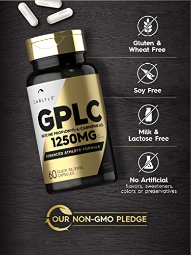 Carlyle GPLC Glycine Propionyl-L-Carnitine HCL Supplement is a powerful and advanced athlete formula designed to provide optimal support for your active lifestyle. Each serving of this supplement delivers 1,250 mg of GPLC, a potent form of L-Carnitine, in convenient quick-release capsules.