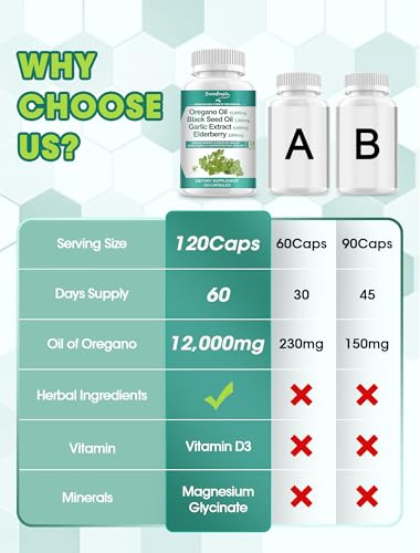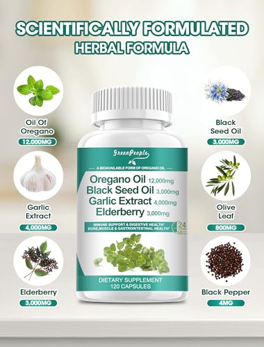Óleo de Orégano Cápsulas Orgânicas 12.000 mg com Óleo de Semente de Nigella Alho Sabugueiro – 120 Cápsulas Veganas – Suporte Imunológico e Digestivo