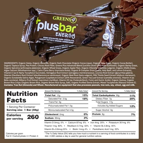 Greens Plus foi fundada com o objetivo de ajudar as pessoas a viverem vidas mais saudáveis e felizes, por isso criamos essas barras veganas nos EUA usando ingredientes naturais. Essas barras de proteína sem glúten contêm chocolate amargo orgânico, tâmaras, amêndoas e nossa mistura exclusiva de superalimentos verdes orgânicos.