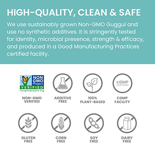 O Suplemento de Colesterol Himalaya Guggul é um produto clinicamente estudado e comprovado para apoiar níveis saudáveis de colesterol HDL e LDL, bem como níveis de triglicerídeos já dentro da faixa normal. Com uma fórmula não transgênica e à base de plantas, este suplemento não contém ingredientes de origem animal e é verificado como não transgênico. Além disso, não possui aditivos, enchimentos artificiais ou ligantes. Livre de estearato de magnésio, glúten, trigo, milho, soja e laticínios, este produto é encapsulado em cápsulas 100% vegetarianas.