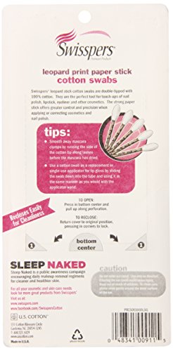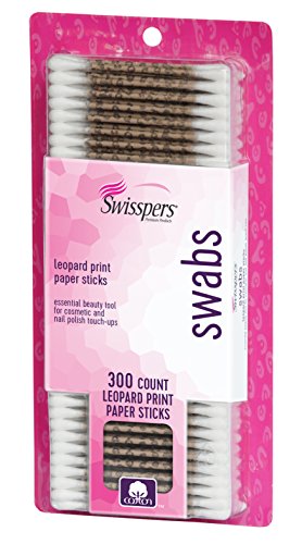 As hastes de algodão Swisspers Premium apresentam um pacote com 300 hastes de algodão estampadas de leopardo, feitas de pontas de algodão 100% puro para uma aplicação e remoção suaves de maquiagem. Essas hastes de algodão são delicadas o suficiente para uso cosmético e seguras para todos os tipos de pele.