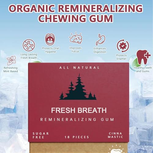 Underbrush Remineralizing Chewing Gum – Organic Mastic Mint Sugar-Free Chewing Gum to Keep Your Mouth Fresh with Nano-Hydroxyapatite for Teeth