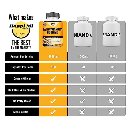 A cápsula de Ashwagandha da Happi Mi Nutrition contém apenas pó de Ashwagandha e pimenta preta adicionada para melhor absorção. Nosso frasco contém 120 cápsulas vegetarianas para um suprimento de 60 dias.