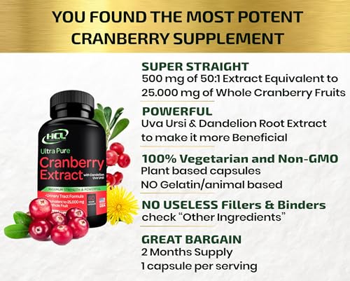 Melhores pílulas concentradas de cranberry disponíveis ✔ Nossas pílulas de concentrado de cranberry de mais alta qualidade consistem em 500 mg de extrato puro de cranberry equivalente a 25.000 mg de cranberries frescos, na proporção mais benéfica. Para torná-lo ainda mais eficaz, adicionamos uma poderosa mistura de extratos de Uva Ursi e Dente-de-leão. Essas ervas potentes tornam nossas cápsulas de cranberry mais recompensadoras para os resultados que você espera.