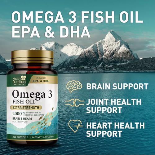 Omega 3 Fish Oil 2000mg Triple Strength Rapid Release Softgels, Omega-3 Supplements, Natural Brain Heart Joint Health