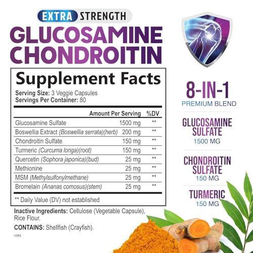 Glucosamina Condroitina com MSM, Cúrcuma e Boswellia para mulheres e homens adultos: fórmula extra flex para saúde e movimento das articulações do joelho em humanos. Cápsulas avançadas de sulfato de glucosamina de 1200 240 força tripla de 1500 mg, comprimidos de glucosamina condroitina de 1500 mg, glucosamina natural para suporte à cartilagem, nutrientes osteo, nutrição, pílulas nutricionais, suplemento em pó, vitaminas glucosamina con condroitina para fisioterapia.