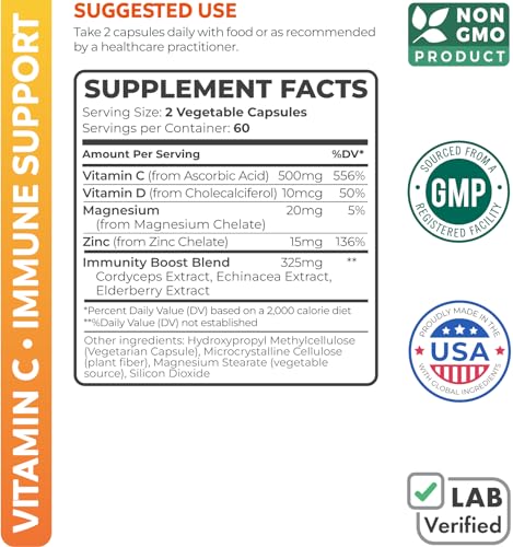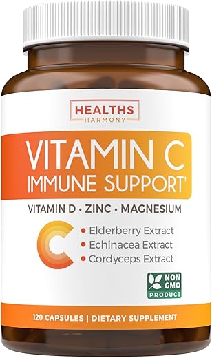 Suplemento de Suporte Imunológico com Vitamina C – Mistura de Reforço Imunológico com Sabugueiro, Vitamina C e Zinco para Uso Diário