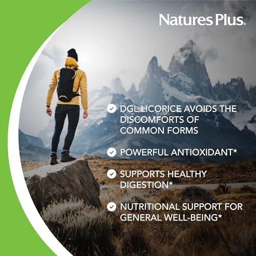 O Natures Plus Herbal Actives Licorice (DGL) 500 mg – 60 Cápsulas, Pack de 3 – Suporta a Digestão Saudável é um suplemento natural que oferece suporte digestivo de alta qualidade. Cada cápsula contém raiz de alcaçuz (DGL) padronizada, que é conhecida por suas propriedades calmantes e reparadoras para problemas gastrointestinais, como úlceras estomacais, cólicas e azia. Além disso, o alcaçuz também pode ajudar na irritação da garganta, tosse e na eliminação de catarro.