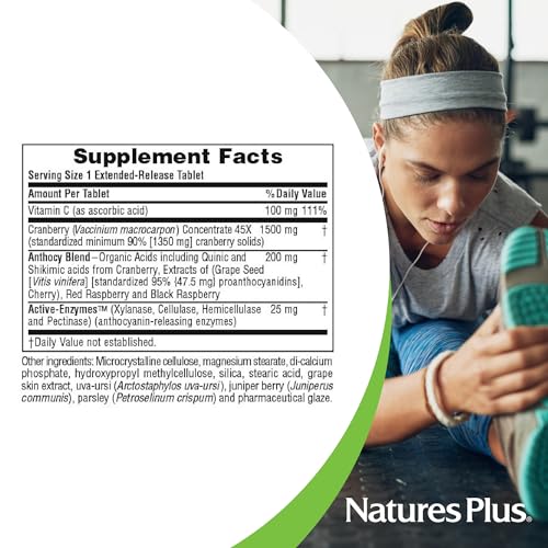 Natures Plus Herbal Actives Ultra Cranberry, Extended Release – 1500 mg, 30 Vegetarian Tablets – Prescription Quality Supplement, Promotes Urinary Tract Health – Gluten-Free