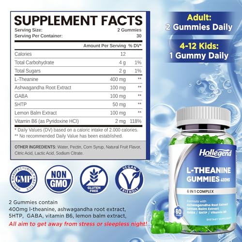 A fórmula 6 em 1 combina 400mg de L-teanina com 100mg de GABA, 100mg de ashwagandha, 50mg de 5HTP, extrato de melissa e vitamina B6. Essa combinação poderosa é perfeita para adicionar à sua rotina diária de cuidados com o corpo.