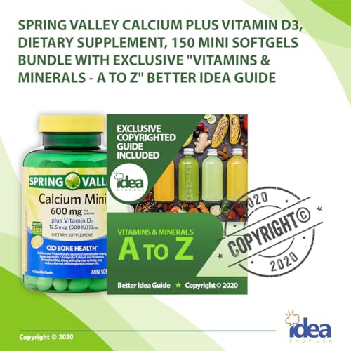 SUPPORTS BONE HEALTH: Cada porção de Spring Valley Calcium Mini com Vitamin D3 Mini Softgels fornece 600 mg de cálcio e 12,5 mcg (500 UI) de vitamina D3. Essa combinação poderosa ajuda a promover a saúde óssea, garantindo uma função e estrutura esquelética ideais.