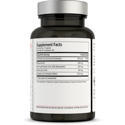 LES Labs Insulin Health – Suporte para Saúde Metabólica e Lipídica é um produto formulado para promover uma função metabólica saudável e apoiar a regulação da absorção e metabolismo de carboidratos e lipídios. Sua fórmula livre de drogas contém extrato de folha de oliveira e cromo, que auxiliam na resposta e sinalização do organismo. Além disso, o berberina e o ácido alfa-lipóico podem ajudar a regular o metabolismo lipídico. Com uma combinação natural de ervas e minerais, este suplemento apoia um peso saudável e um estilo de vida ativo. Todos os produtos LES Labs são fabricados nos EUA em instalações certificadas GMP, sem o uso de produtos químicos ou aditivos artificiais. Tenha confiança ao adquirir as cápsulas de suporte LES Labs, pois a descoloração natural do extrato de folha de oliveira não afeta a potência ou eficácia do produto.