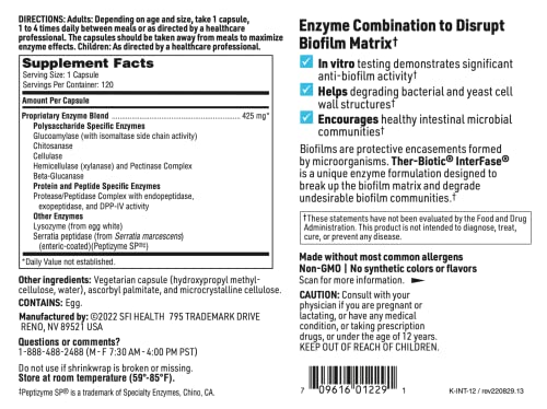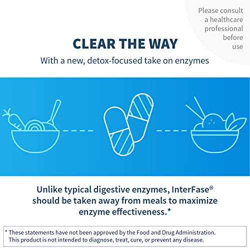 Klaire Labs Interfase – Digestive Enzyme Blend to Support GI Detox é uma fórmula altamente especializada de enzimas que suporta a função gastrointestinal normal e a microbiota. Esta fórmula inclui enzimas específicas para polissacarídeos, um complexo de protease/peptidase específico para proteínas e peptídeos, lisozima (proveniente de clara de ovo) e Serratia peptidase com revestimento entérico.