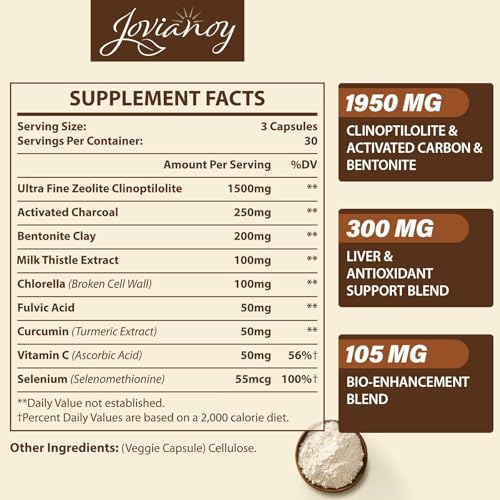 2300 MG Zeolite Detox Capsules, Organic Activated Charcoal, Bentonite Clay, 1-2 µm Clinoptilolite, Maximum Absorption, Gut Liver Detox Cleanse Full Body for Women Men, 90 Capsules