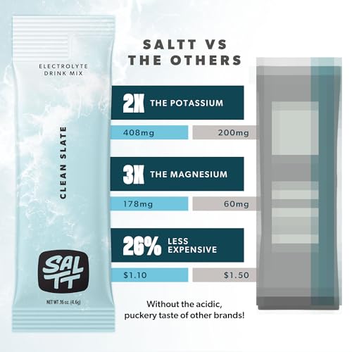 Conheça o SALTT Electrolytes Powder Unflavored Drink Mix – Clean Slate – 30 Hydration Packets – Magnesium, Potassium, Sodium, Trace Minerals – Zero Sugar. Este produto foi projetado para atender às suas necessidades diárias de hidratação e fornecer energia livre de cafeína para que você possa viver a vida ao máximo. Sem sabores artificiais, sem adoçantes. Apenas eletrólitos puros para todos nós que gostamos de manter as coisas simples.