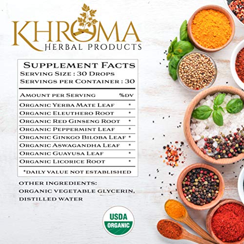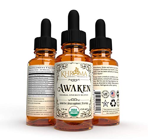 Awaken – Suplemento Energético Orgânico – 2 oz Líquido em Frasco de Vidro – Yerba Mate, Raiz de Eleuthro, Ginseng Vermelho, Hortelã-Pimenta, Ginkgo Blob, Ashwaganhda, Guayusa – por Khroma Herbs