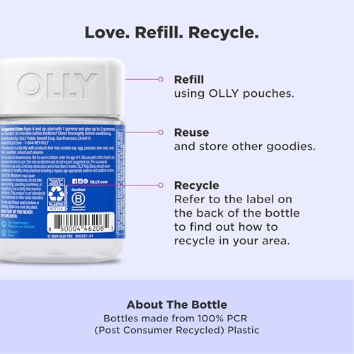 As gomas OLLY Kids Sleep têm sabor de framboesa e são feitas com ingredientes naturais, sem corantes ou sabores sintéticos. Além disso, são livres de glúten. Cada frasco contém 50 gomas deliciosas.