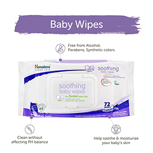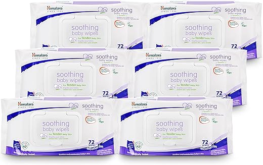 Os lenços umedecidos Himalaya Soothing Baby Calming contêm uma combinação de lavanda e aloe vera, proporcionando uma experiência calmante e relaxante durante as trocas de fraldas e limpezas.