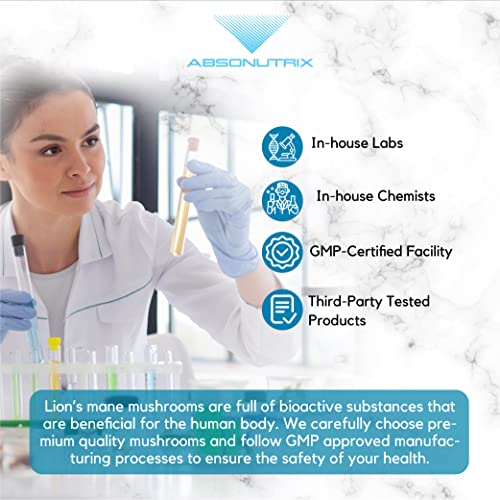 Absonutrix Lion’s Mane Mushroom Extract 120 Cápsulas, Suporta o Sistema Imunológico, Ajuda a Melhorar a Saúde Cognitiva, Ingredientes de Alta Qualidade, Fabricado nos EUA, 500 mg por porção.