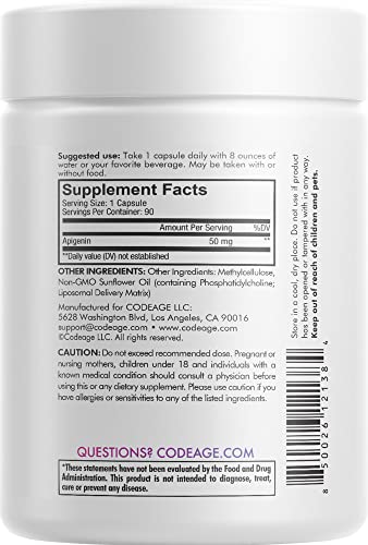 Fabricado nos EUA: A mistura herbal de apigenina lipossomal Codeage é vegana e fabricada nos EUA em uma instalação certificada cGMP com ingredientes globais para qualidade e pureza.