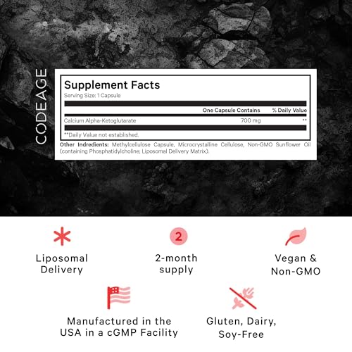 A Codeage Liposomal Calcium AKG é um suplemento de cálcio que combina cálcio com alfa-cetoglutarato, um composto naturalmente presente no corpo e envolvido em vários processos bioquímicos. Esta fórmula sinérgica de cálcio AKG oferece suporte diário para a saúde óssea e muscular.