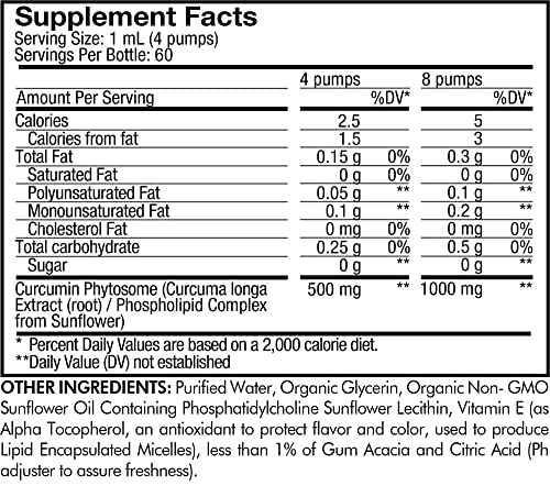 Fabricado nos EUA: O suplemento líquido de cúrcuma Codeage Nanofood Liposomal Curcumin Phytosome é à base de plantas, não transgênico, sem glúten, laticínios e soja. Este suplemento vitamínico líquido de cúrcuma para beber e alternativa às cápsulas de cúrcuma é fabricado nos EUA com ingredientes globais em uma instalação cGMP.